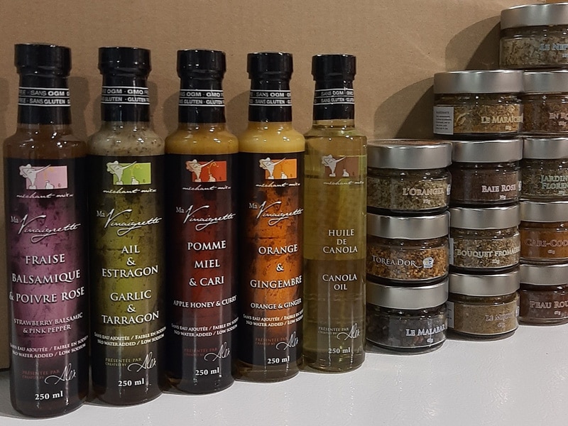 Méchant Mix distribue une douzaine de produits tels que des marinades, des condiments, des assaisonnements et des épices appréciés par tous.